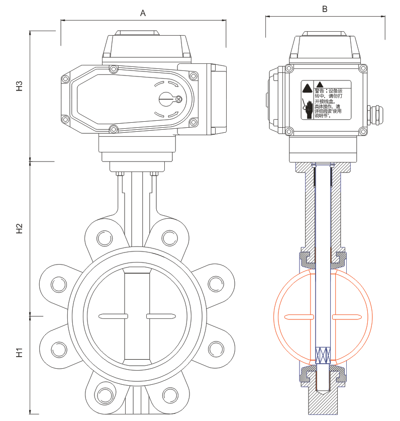 工作電源通常有:DC24V,AC220V,AC380V等。輸入信號:4~20mA 0~10v等弱電信號。由調(diào)節(jié)型電動執(zhí)行機構(gòu)和閥桿連接調(diào)試好以后;以電能作為驅(qū)動力來驅(qū)動硬密封蝶閥閥板,作0~90°部分回轉(zhuǎn)運動。接收工業(yè)自動化控制系統(tǒng)的4~20mA信號來精確控制閥門開度,從而達到流量、溫度、壓力等不同工藝參數(shù)的調(diào)節(jié)和控制。
